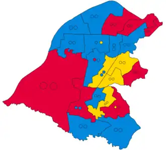 | Labour Party | 63,274 (33.1%) | 19 (30.2%) | 19 / 63 | ||