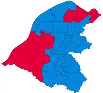| Conservative Party | 40,753 (57.4%) | 17 (81.0%) | 17 / 21 | 47 (74.6%) | 47 / 63 | |||||