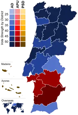 - ^ a b Democratic Alliance results are compared to the combined totals of the Social Democratic Party, the Democratic and Social Centre and the People's Monarchist Party in the 1976 election.