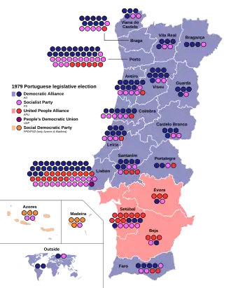 - ^ The Portuguese Communist Party (PCP) and the Portuguese Democratic Movement (MDP/CDE) would contest the 1979 election in a coalition called United People Alliance (APU).