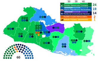 Constitutional Assembly elections were held in El Salvador on 28 March 1982.[1] The Christian Democratic Party won a plurality, with 24 of the 60 seats. Voter turnout was 68.0%.[2] A coalition government, representing the three largest parties equally, was subsequently formed under the presidency of Álvaro Magaña.