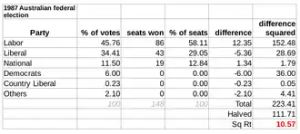 | 11 July 1987 election | 45.90% | 45.90% | 6.00% | 2.18% | |
