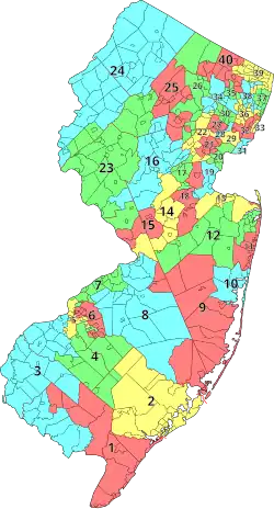 As required, the New Jersey legislature redistricted its state legislative districts in advance of the 1991 election. Redistricting was considered to have favored Republicans,[1][2] reflecting relative growth in the suburbs versus the state's Democratic urban cores.[1]