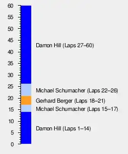 On the formation lap, Schumacher overtook Hill twice (once when leaving the dummy grid, and then once more further round the lap), before dropping back to take his second place on the grid for the start.