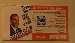 Neither the opposition nor international observers denounced major irregularities in the election, and Zedillo's victory was mostly accepted as definitive. However, there was considerable criticism towards the inequity regarding campaign financing and media exposure, both of which disproportionately favoured the PRI: the PRI alone was responsible for 78.3% of the reported campaign expenses in 1994, while the PAN was responsible for 10.4% and the PRD for 1.52% of said expenses.[8] Zedillo himself stated, during an international tour in 1995, that the election which had brought him into the Presidency had been "legal, but unequal".[9][10][11] PAN candidate Diego Fernández de Cevallos would later say that he hadn't been defeated by Zedillo, but "by [President] Salinas and Televisa".[12] Subsequent political and electoral reforms sought to provide clear rules for campaign financing, as well as less unequal access to the mass media for the opposition parties.