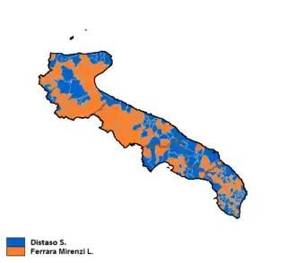 Salvatore Distaso (the candidate of the centre-right coalition ) was elected President of the Region, defeating Luigi Ferrara Mirenzi (Italian People's Party ) by a slim margin.
