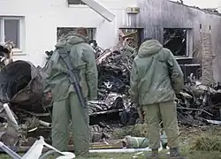Fires, fueled by jet fuel from the helicopters, broke out on the ground, and munitions that had been stored aboard the helicopters cooked off and set off a series of explosions. Some witnesses claimed they could hear faint cries coming from the wreckage, but they could not get close to them because of the explosions, and that the cries ceased after the explosions. One witness claimed to have seen a soldier thrown from a helicopter who initially still had a pulse, but died soon after. All 73 soldiers on the helicopters were killed. There were no casualties on the ground.[5][3][6][7]