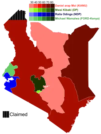 | Daniel arap Moi | Kenya African National Union | 2,500,865 | 40.40 |