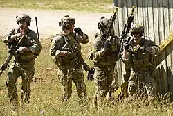 It was originally formed shortly after the United States' entry into World War II and was modeled after the British Commandos during the war. Members from the unit were the first American soldiers to see combat in the European theater when they participated in the failed raid on Dieppe in France in 1942, during which three Rangers were killed and several more were captured. Later, the 1st Ranger Battalion was sent to North Africa where they participated in the landings in Algeria and the fighting in Tunisia in 1943. Also in 1943 the unit provided training cadre to train up two more Ranger battalions between the campaigns in Sicily and Italy.[2] After World War II, the 1st Ranger Battalion went through a number of changes of name and composition as it has been activated, deactivated, and reorganized on a number of occasions. However, the unit has lived on in one form or another since then, serving in the Korean and Vietnam Wars before being consolidated into the 75th Ranger Regiment of which it is a part today. Deployments have included operations in Syria, Iraq, and Afghanistan as part of the wider global war on terrorism.