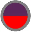 The circumstances of the battalion's establishment overseas resulted in the unique situation of the battalion's personnel being issued two different unit colour patches. Personnel who were in the United Kingdom at the end of 1940 were issued with a circular UCP consisting of purple over red, with a border of grey. However, this UCP was issued without reference to Army Headquarters in Australia, who issued battalion reinforcements in Australia with a UCP consisting of an upright white and yellow rectangle inside a grey circle: this was intended to link the battalion to the 32nd Battalion, which had served during the First World War. Upon arrival at the unit, though, these patches were replaced with the purple and red patches.[5] The battalion received a third UCP, following the unit's involvement in the fighting at Tobruk, when the 9th Division units adopted a T-shaped UCP.[6]