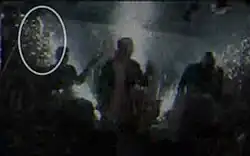 The fire, from its inception, was caught on videotape by cameraman Brian Butler for WPRI-TV of Providence, and the beginning of that tape was released to national news stations.[36] Butler was there for a planned piece on nightclub safety being reported by Jeffrey A. Derderian, a WPRI news reporter who was also a part-owner of The Station.[37] The report had been inspired by the E2 nightclub stampede in Chicago that killed 21 people three days earlier.[38] Derderian had begun working for WPRI on February 17, three days before the fire.[39] WPRI-TV and Derderian were criticized for the conflict of interest in having a reporter report on his own property.[40][37] Derderian resigned from WPRI on June 30.[39]