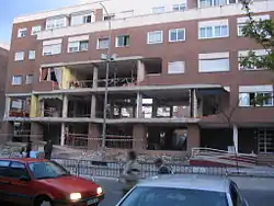 Damaged building in Leganés where the four terrorists died