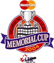 The Memorial Cup trophy The 2004 Memorial Cup (branded as the 2004 Mastercard Memorial Cup for sponsorship reasons) occurred May 15–23 at Prospera Place in Kelowna, British Columbia.[1] It was the 86th annual Memorial Cup competition and determined the major junior ice hockey champion of the Canadian Hockey League (CHL). It featured the host team, the Kelowna Rockets as well as the winners of the Ontario Hockey League, Quebec Major Junior Hockey League and the Western Hockey League which were the Guelph Storm, Gatineau Olympiques and the Medicine Hat Tigers respectively.[1] The Kelowna Rockets would be the eventual winners,[1] and would become only the fourth host team to win without winning their league as well. (The first time was in 1983, when the Portland Winter Hawks won it, the second was in 1993 when the Sault Ste. Marie Greyhounds won it, and the third was in 1999 when the Ottawa 67's won it.) Kelowna defeated the Olympiques who made their second straight Memorial Cup final, but as with 2003, the 'Piques came up short. Kelowna also participated in the 2003 tournament as WHL champions but did not advance to the final, and would participate as WHL champions in the 2005 Memorial Cup as well.
