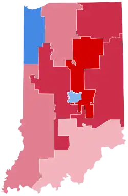 The 2004 congressional elections in Indiana were elections for Indiana's delegation to the United States House of Representatives, which occurred along with congressional elections nationwide on November 2, 2004. Republicans held a majority of Indiana's delegation, 6–3, before the elections. The only incumbent to lose re-election was Democrat Baron Hill, who lost to Republican Mike Sodrel in the 9th district.[1]
