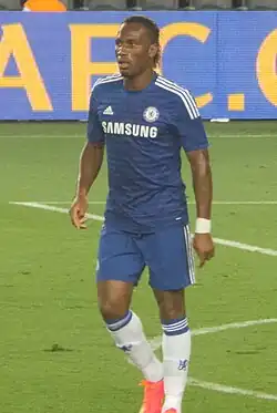 Within a minute of the kick-off, Liverpool had scored. Striker Fernando Morientes ran over to the right-hand side of the pitch, his cross to the edge of the Chelsea penalty area was met by midfielder John Arne Riise, who volleyed the ball into the Chelsea goal to give Liverpool a 1–0 lead. As of 2015 The goal was the fastest scored in a League Cup final.[22] Liverpool continued to attack and two minutes later Riise had another chance, however his shot hit Chelsea defender Paulo Ferreira.[23] Liverpool defender Sami Hyypiä received the first yellow card of the match in the 13th minute for a challenge on Didier Drogba.[24] Chelsea started to come into the game and they were awarded a free-kick in the 19th minute when Liverpool defender Steve Finnan was penalised for a foul on Damien Duff. However, the free kick from Ferreira was cleared by Liverpool. A run by Finnan in the 27th minute saw him go past Duff and defender William Gallas before he passed to Luis García, but his shot was blocked by Ricardo Carvalho.