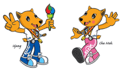 The 2006 FESPIC Games logo is a heart-shape image which represents the spirit, passion and tradition of the FESPIC Games. The initial KL in the logo, represents Kuala Lumpur, the capital city of Malaysia as the venue of the Games, and the '06 represents to the year 2006.[10] The official mascot of the 2006 FESPIC Games is a pair of mousedeer named "Ujang", the male one and its female counterpart, "Cek Mek". The adoption of mousedeer as the games' mascot is to represent the courage of the Paralympic athletes in overcoming challenges and the odds. The names of the mascots, Ujang and Che Mek, are common nicknames for local Malay youths.[11]