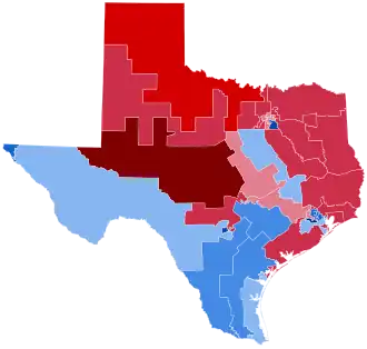 Texas underwent a second round of mid-decade redistricting as a result of the Supreme Court case League of United Latin American Citizens v. Perry. The court had ruled that District 23 violated the Voting Rights Act.[1] Due to this ruling, the 15th, 21st, 23rd, 25th, and 28th districts were redrawn after the primary election had occurred, voiding the results. These districts instead conducted special elections concurrent with the general elections.[2] This election marks the first time Democrats made a net gain of seats over Republicans since the 1992 elections.