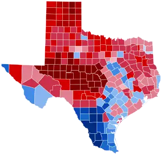 County results Hinojosa: 50–60% 60–70% 70–80% 80–90% Zamora: 40–50% 50–60% |