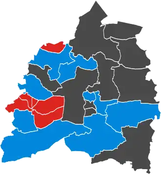 ![]() No election Colours denote the winning party, as shown in the main table of results. | |||||||||||||||||||||||||