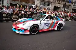 ![]() Nicholas Morley in his TechArt Porsche 997 Turbo leaving London at the start of the Rally. | |