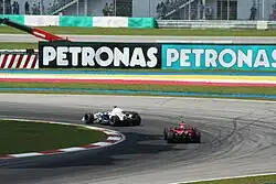 The 2007 Malaysian Grand Prix (formally the 2007 Formula 1 Petronas Malaysian Grand Prix)[3] was a Formula One motor race, held on 8 April 2007 at the Sepang International Circuit and the second race of the 2007 FIA Formula One World Championship. Reigning world champion Fernando Alonso won the race from second on the grid, with McLaren teammate Lewis Hamilton finishing second. This marked McLaren's first one-two finish since the 2005 Brazilian Grand Prix. Previous race winner Kimi Räikkönen finished third. Räikkönen's Ferrari teammate Felipe Massa started the race from pole position, but was passed by both McLarens in the first two corners of the first lap, eventually finishing in fifth place behind BMW's Nick Heidfeld.