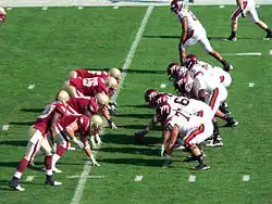 The Boston College offense, which gained 319 yards per game on average, was ranked 94th (of 120 Football Bowl Subdivision teams) in total offense.[57] A key component of the offense was guard Cliff Ramsey, who was named a first-team All-ACC selection, signifying his status as the best player at his position in the conference. Tight end Ryan Purvis was named a second-team All-ACC selection.[62] Quarterback Dominique Davis led the Eagles' offense on the field heading into the ACC Championship. Davis had been the second-string quarterback until a season-ending injury to starter Chris Crane. During his limited time in the regular season, Davis had three passing and two rushing touchdowns.[63]