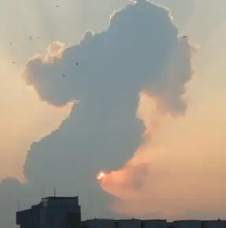At 6:28 am,[4] Sofia residents were awakened by a powerful, deafening explosion so loud it set off car alarms in districts as far away as Lyulin, some 15 km from the blast. Further east there was great panic among residents as the shockwave shattered windows and some trees were blown down. There was another powerful blast at 6:45 am. Explosions continued throughout the day prompting authorities to evacuate the residents of Chelopechene, Chepintsi and Botunets. A mushroom cloud formed after the first explosion and rose quickly into the morning sky, obscuring the sun. Smaller explosions occurred after midnight on the morning of July 4.[5]