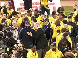 Cal head coach Jeff Tedford accepts the 2008 Emerald Bowl trophy | |||||||||||||||||||