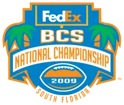 The 2009 BCS National Championship Game (branded as the 2009 FedEx BCS National Championship Game for sponsorship reasons) was an American football game played at Dolphin Stadium in Miami Gardens, Florida, on January 8, 2009. It was the national championship game for the 2008 NCAA Division I FBS football season, and featured the second-ranked Florida Gators against the top-ranked Oklahoma Sooners. The two participants were determined by the BCS Rankings to decide the BCS National Championship. Television coverage in the United States was provided by Fox, and radio coverage by ESPN Radio. The game was the last BCS Championship to air on Fox; starting with the 2010 game, ABC or ESPN televised the championship.