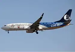 Shandong Airlines Boeing 737-800 in a livery promoting the Games.