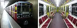 The first explosion occurred on the Red Arrow – 75 years train at the Lubyanka station at approximately 7:56 am local time (03:56 UTC). The train started from Yugo-Zapadnaya, and stopped at Lubyanka station. Once the train doors opened, explosives worn by a woman standing at the second carriage's second exit detonated. The explosive had a force of up to 1.5 kg of trinitrotoluene (TNT). Fifteen people on board the train, and eleven people on the platform, were killed. One victim from the third carriage died from a head injury caused by an 8 mm (0.31 in) piece of metal.[19]