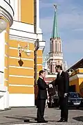 Chinese leader Hu Jintao confirmed his attendance at the parade on 3 May. The following day Slovak President Ivan Gašparovič's attendance was confirmed.[7] Other world leaders who confirmed their attendance included Czech President Václav Klaus,[8] French President Nicolas Sarkozy,[8] Italian Prime Minister Silvio Berlusconi,[8] Serbian President Boris Tadić,[9] Bulgarian President Georgi Parvanov,[10] and Vietnamese President Nguyễn Minh Triết,[11] Leaders from Armenia, Azerbaijan, Estonia, Greece, Israel, Kazakhstan, Latvia, Mongolia and Slovenia also confirmed their attendance.[9] On 8 May, Sarkozy and Berlusconi announced that they wouldn't be attending the parade in Moscow, so that they could deal with the euro area crisis.[12][13]