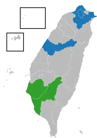 Local elections were held in Taiwan on 27 November 2010 to elect mayors, councillors, and village chiefs of special-municipalities (Kaohsiung, New Taipei, Taichung, Tainan and Taipei), known as the Five Municipalities Elections (Chinese: 五都選舉).[2] Mayoral candidates for the Kuomintang were elected in New Taipei, Taipei, and Taichung, while candidates for the Democratic Progressive Party were elected in Kaohsiung and Tainan. On the eve of the election, Sean Lien, son of former Vice President Chan Lien, was shot in face when he was campaigning for a Kuomintang New Taipei councillor candidate.