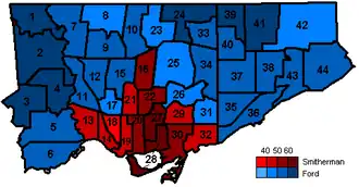 - ^ a b c "Councillors choosing sides as Ford and Smitherman battle", Toronto Star, October 15, 2010