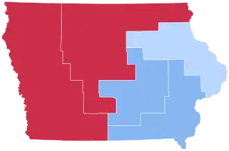 Despite losing the popular vote, Democrats won a majority of congressional districts in Iowa, which they have only done once since- in 2018. As a result, Iowa became one of four states in which the party that won the state's popular vote did not win a majority of seats in 2010, the other states being New Jersey, Illinois, and North Carolina.