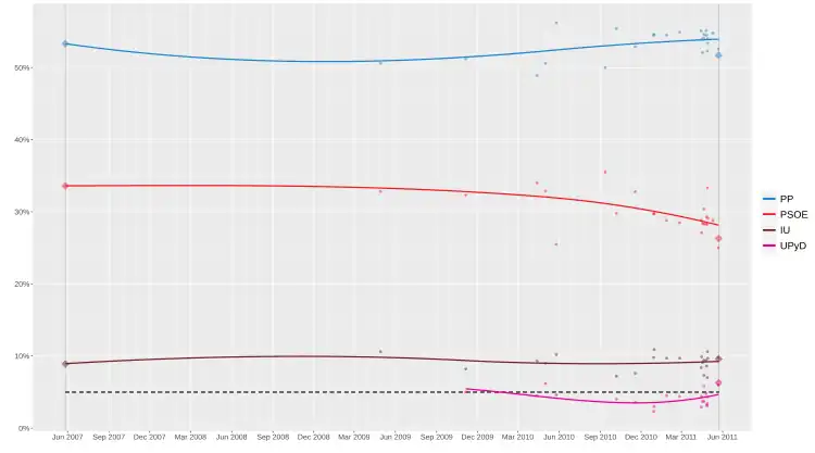 - ^ "El PP logrará más de la mitad de los votos". ABC (in Spanish). 9 May 2011.