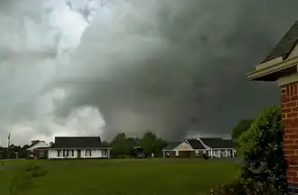 In the afternoon hours of April 27, 2011, an extraordinarily violent and fast-moving EF5 tornado devastated areas of rural Mississippi and Alabama, including the town of Smithville, Mississippi, resulting in catastrophic damage and 23 fatalities. This tornado was a part of the 2011 Super Outbreak, the largest tornado outbreak in United States history, and the third of four EF5 tornadoes to touch down on April 27, 2011, during the outbreak's most prolific day for tornadoes. The tornado reached an estimated maximum width of 3⁄4 mile (1.2 km) with estimated wind speeds of 205 mph (330 km/h).