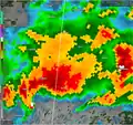 The potential for tornadoes ramped up from noon through 9:00 p.m. CDT. During this period, much of Mississippi and Alabama experienced numerous supercell thunderstorms that produced violent tornadoes, including four EF5 tornadoes, one being the Smithville tornado.[4][6][7] The Smithville supercell itself existed along a thermal boundary in northeastern Mississippi. This was an east–west oriented outflow boundary left behind by the morning squall line. This boundary is also assumed to be the same boundary that the Hackleburg tornado developed on. Conditions were locally enhanced by more easterly surface winds generated along the residual boundary, allowing for a corridor of enhanced tornado potential.[1]