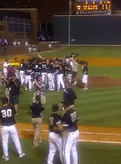 | College World Series | | Date | Opponent | Site/stadium | Score | Win | Loss | Save | Attendance | Overall record | CWS record | | June 18 | North Carolina | Johnny Rosenblatt Stadium • Omaha, NE | W 7–3 | Williams (2–2) | Johnson (13–2) | None | 22,745 | 53–10 | 1–0 | | June 20 | Florida | Johnny Rosenblatt Stadium • Omaha, NE | L 1–3 | Rodriguez (4–2) | Garvin (13–2) | None | 20,182 | 53–11 | 1–1 | | June 22 | North Carolina | Johnny Rosenblatt Stadium • Omaha, NE | W 5–1 | Hill (6–1) | Holt (7–2) | None | 24,394 | 54–11 | 2–1 | | June 24 | Florida | Johnny Rosenblatt Stadium • Omaha, NE | L 4–6 | Maddox (3–0) | Gray (12–3) | None | 20,087 | 54–12 | 2–2 | |
