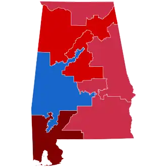 A redistricting bill was passed by the Alabama House of Representatives and Senate on June 2, 2011,[2] and signed into law by Governor Robert Bentley on June 8.[3] To comply with the 1965 Voting Rights Act, the map received approval from the U.S. Department of Justice or a federal court before it could be enacted;[4] the Department of Justice approved the map on November 21, 2011.[5]