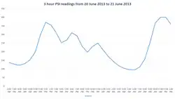 - ^ "PSI hits new all-time high of 401 on Friday". Channel NewsAsia. 21 June 2013. Archived from the original on 24 June 2013. Retrieved 21 June 2013.