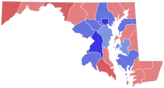Franchot: 50–60% 60–70% 70–80% 80–90% >90% Campbell: 50–60% 60–70% 70–80% Tie: 50% No data | |||||||||||||||||