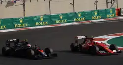 Further back in the field, Max Verstappen overtook Nasr and Button to move into twelfth place on laps 44 and 46 respectively. However, he was deemed to have forced Button wide and was handed a five-second penalty to be added to his finishing time. Lap 53 saw Romain Grosjean move into the final point scoring position of tenth by passing Carlos Sainz Jr. into turn eight. Just one lap later, he took ninth place from Daniil Kvyat. At the front, Hamilton proved unable to reach his teammate, who took the checkered flag for his sixth win of the season. Kimi Räikkönen completed the podium, followed by Vettel, Pérez and Ricciardo.[24][25]
