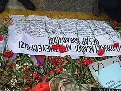 - ^ "Binler Taksim'de katliamın hesabını sormak için yürüyor". BirGun.net. 10 October 2015. Archived from the original on 11 October 2015. Retrieved 10 October 2015.