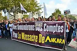 - ^ Yeginsu, Ceylan; Arango, Tim (10 October 2015). "Explosions During Peace Rally in Ankara, Turkey's Capital, Kill Scores". The New York Times. Retrieved 10 October 2015.