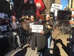 Nepalese residing in the UK demonstrated against the Indian Prime Minister Narendra Modi at 10 Downing Street, London during his visit on 12 November 2015. The demonstrators included ex-military families (the so-called "Gurkha Regiment" and "non-Gurkhas"), Sikh extremists and various other individuals dissatisfied with the Indian Prime Minister. Some reports claimed that as soon as Modi arrived back in Delhi, he ordered an assessment of the power that the Nepali people have in Great Britain and other places overseas[65] On 17 November, the "Non-Resident Nepali Association USA" protested against what they refer to as the Indian Government's so-called "economic blockade of Nepal" in front of United Nations Headquarters in New York.[66] Also on 30 November, another branch of the same "non-resident Nepali" group protested in front of India's embassy in Washington, D.C.