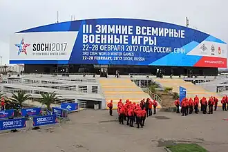 Sochi was chosen as the host city for the 3rd Winter Military Games at the 70th general assembly of the International Military Sports Council in Kuwait City, Kuwait in 2015. The Games were held in sports venues built for the 2014 Winter Olympic Games.[1]