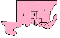 Map of Sault Ste. Marie's five new wards Two elected per ward.[ 6]