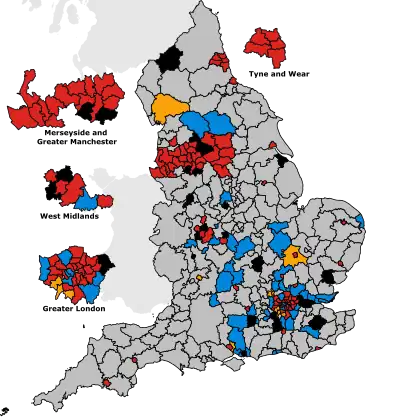 One third of the seats in 30 metropolitan boroughs were up for election: