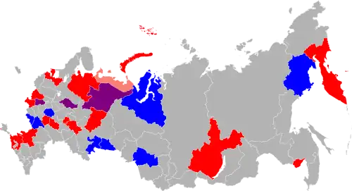 The 2020 Russian regional elections took place across three days from 11 to 13 September 2020 in 28 out of the 85 federal subjects of Russia. Voters elected 18 directly-elected governors, 2 indirectly-elected governors and 11 regional parliaments.[1] The elections also coincided with local elections in many cities. A total of 156,000 candidates stood for 78,000 positions at regional, local and municipal levels. The vote was extended over three days in a move the government said was to avoid over-crowding and to reduce the risk from COVID-19.